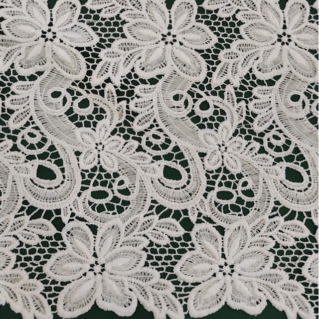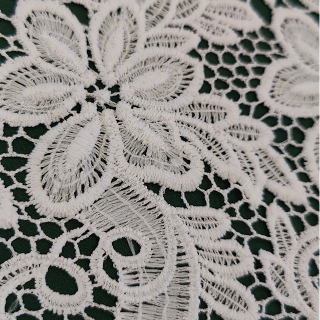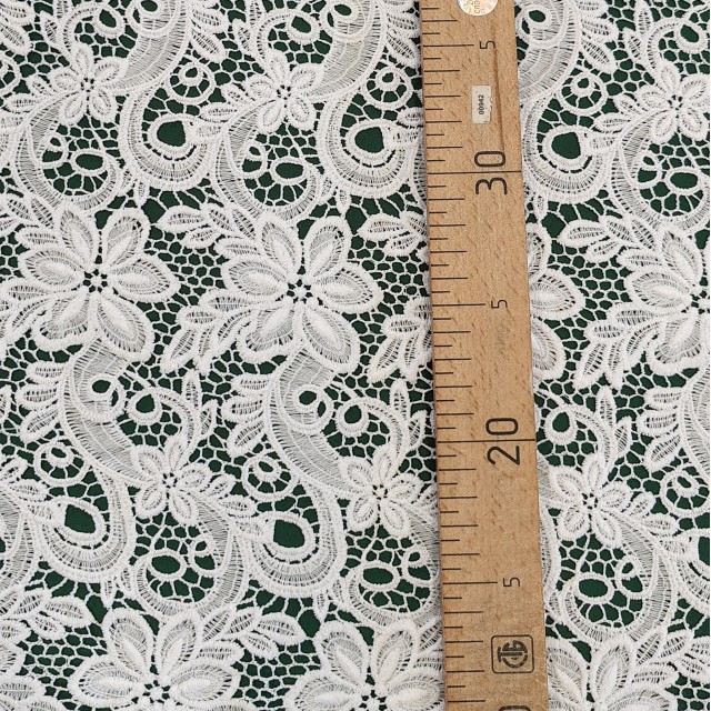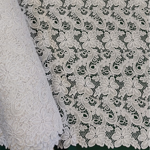 • Гипюр макраме белого цвета для пошива свадебных и нарядных платьев