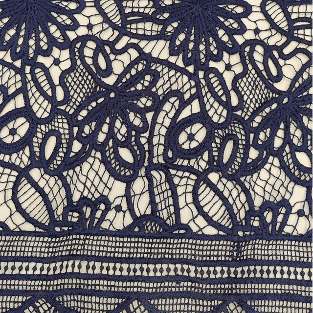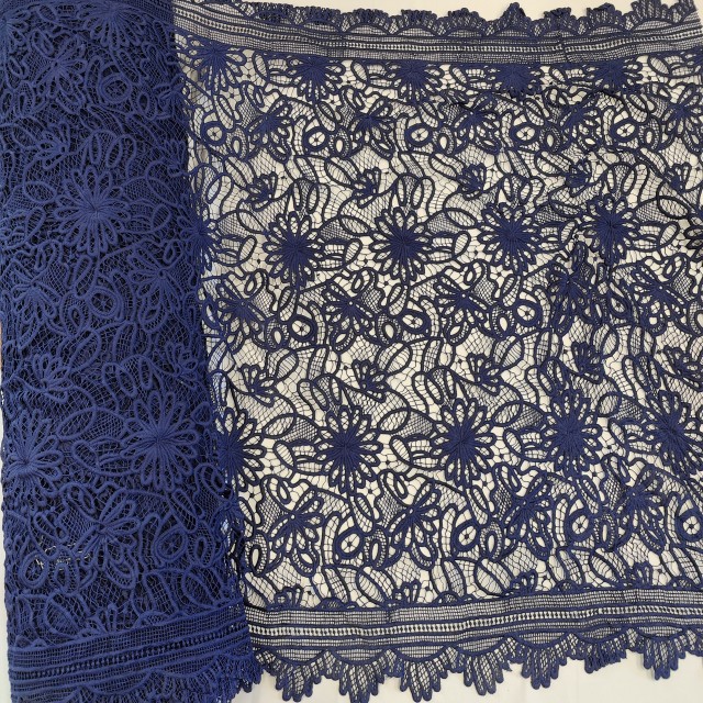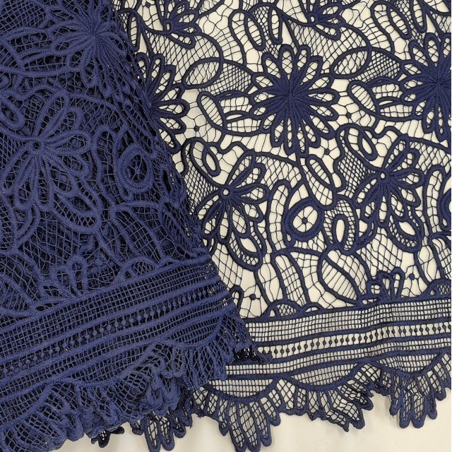 - Гипюр макраме темно-синего цвета для пошива нарядных платьев