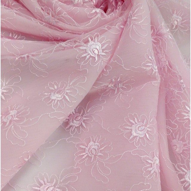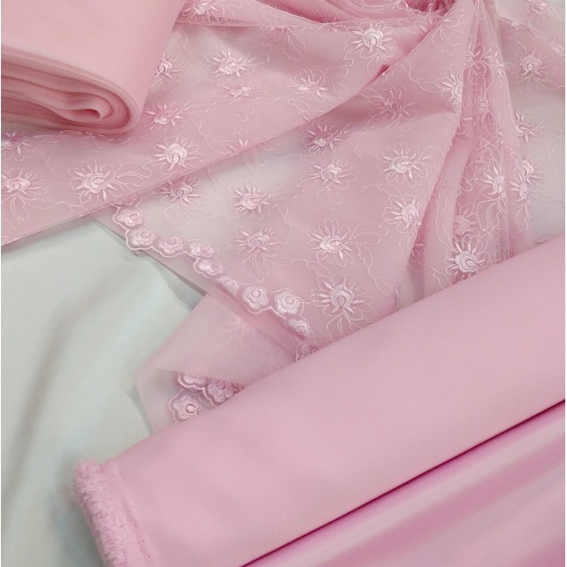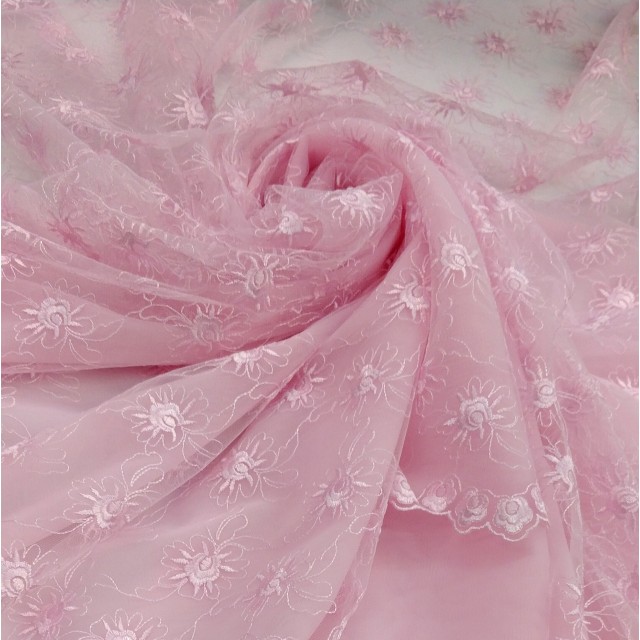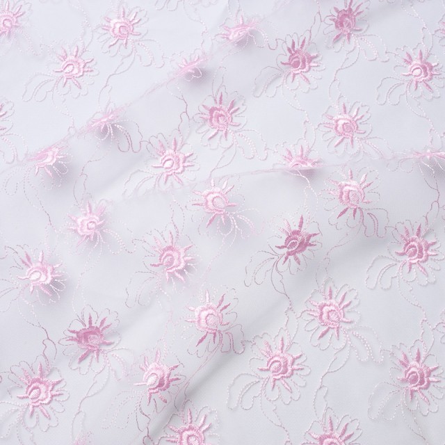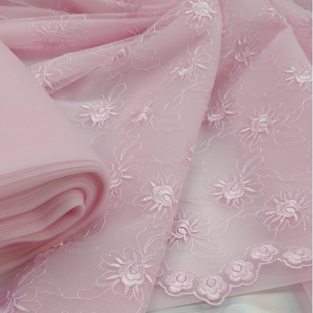 Вышивку на сетке используют в пошиве нарядных платьев и аксессуаров к ним. Так же такое кружевное полотно можно использовать и в декорировании помещений к примеру балдахина для детской кроватки.