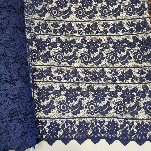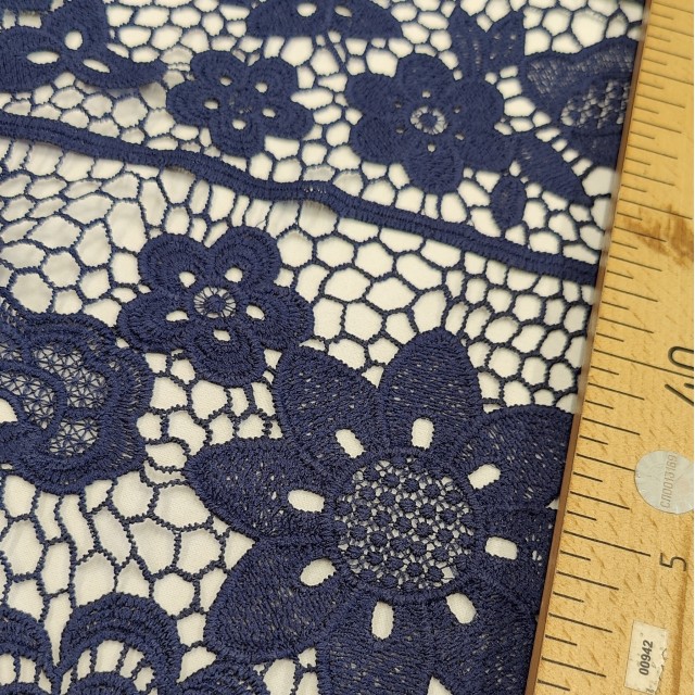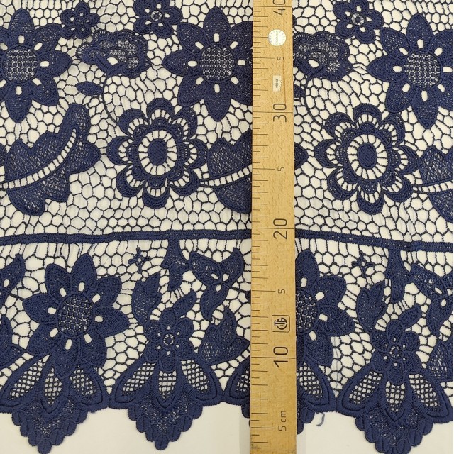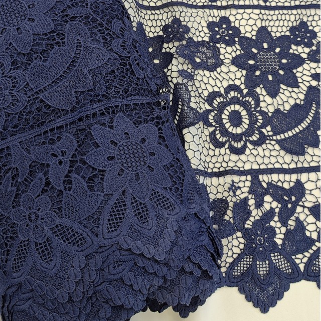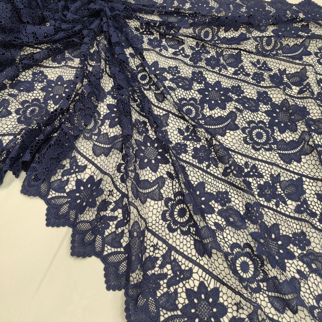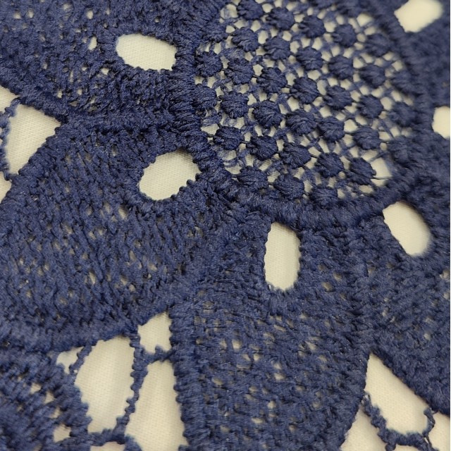 • Гипюр макраме темно-синего цвета для пошива нарядных платьев