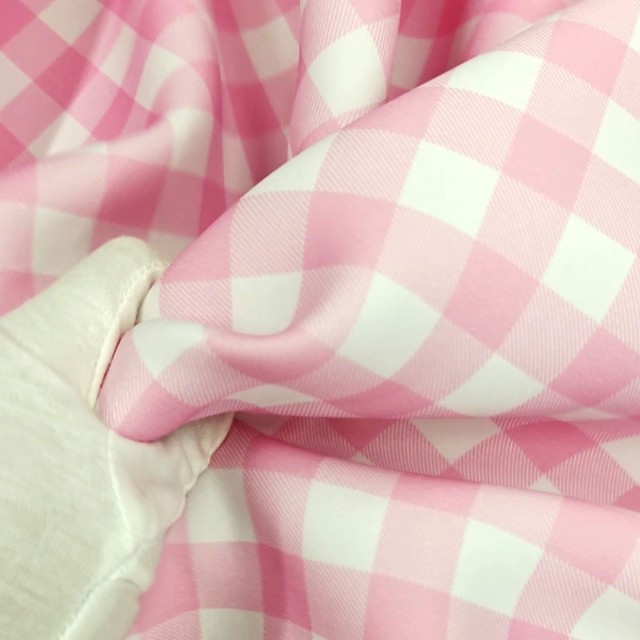 - Неопрен в мелкую розовую клетку для пошива нарядных платьев и нарядов