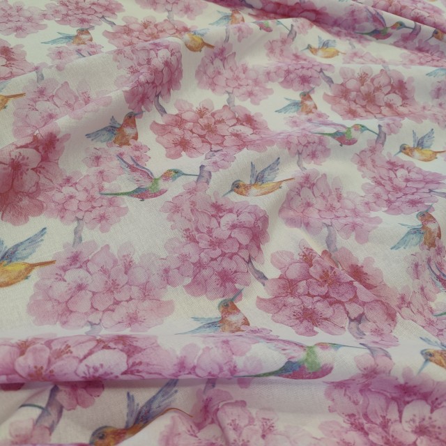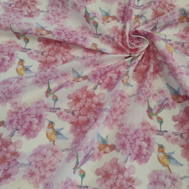 Ткань - полулен с красивым цветочным принтом для пошива летних платьев