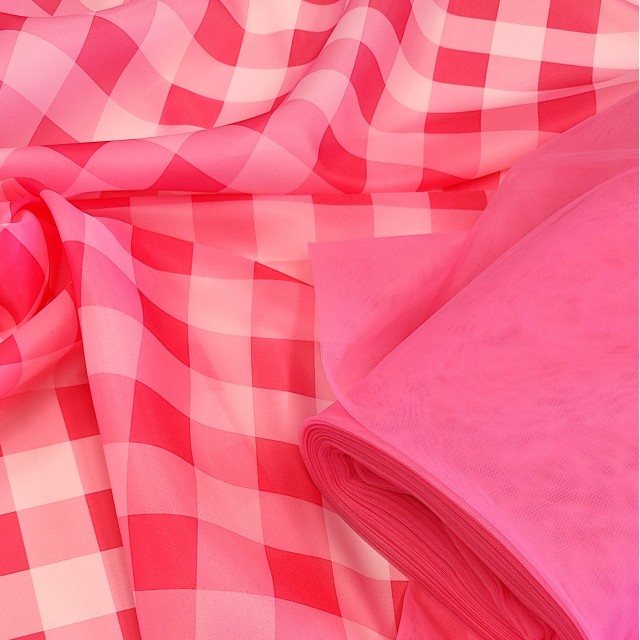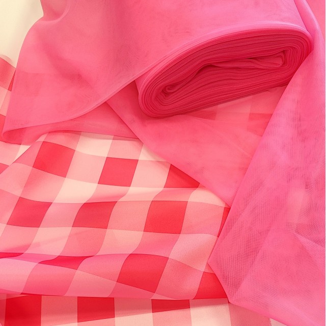 - Органза матовая Виола клетка в стиле Барбикор для пошива нарядного платья.