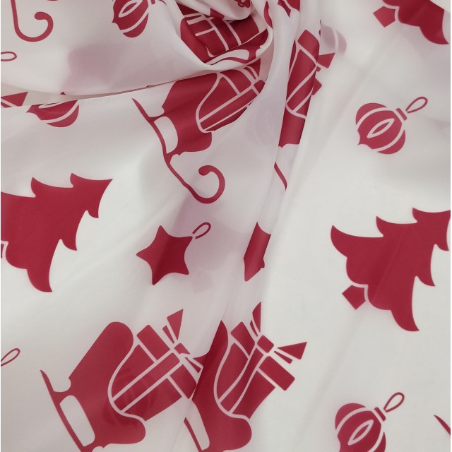 Ткань органза матовая Виола с новогодним вариантом принта будет прекрасным вариантом для пошива нарядного платья.