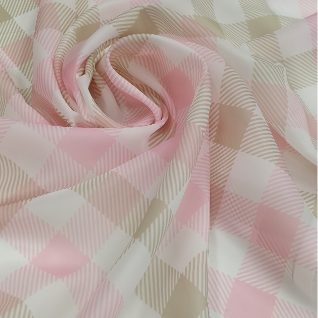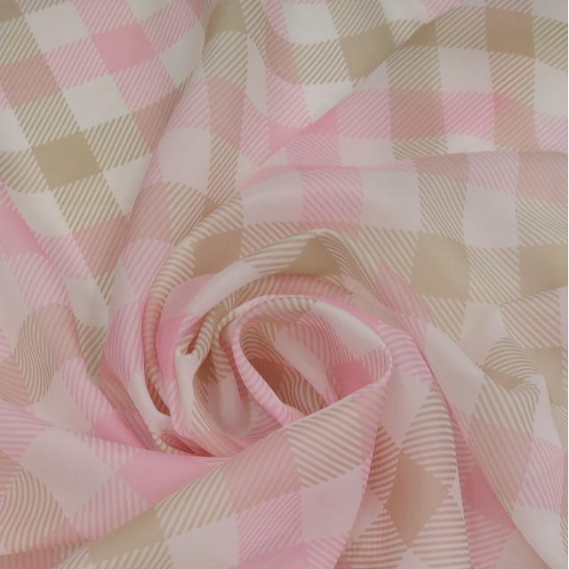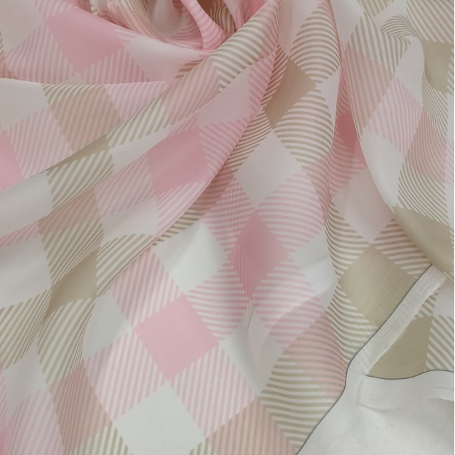 - Плательная органза матовая Виола с клеткой тартан розовой для шитья нарядных платьев