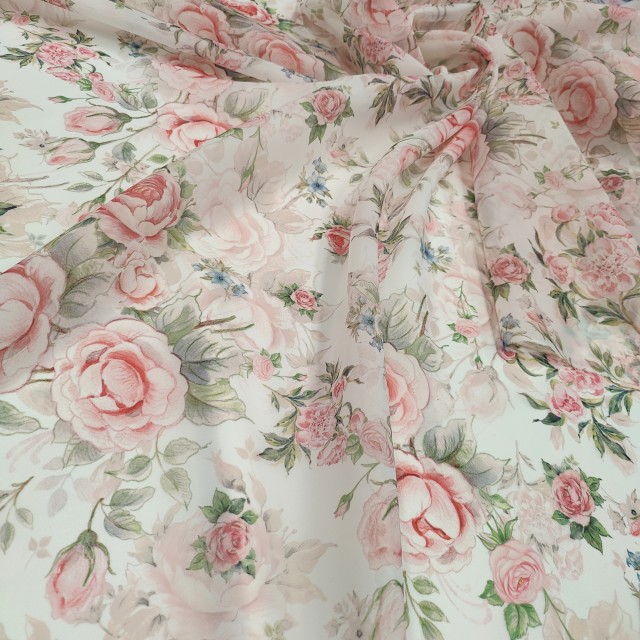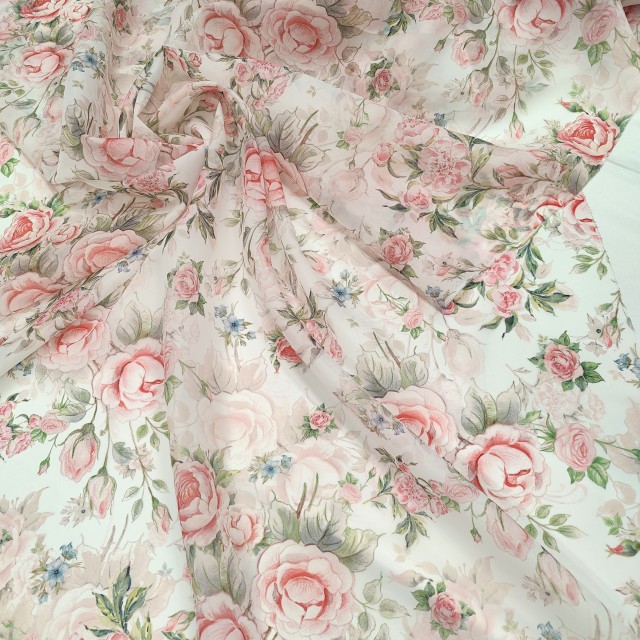- Ткань органза матовая Виола с красивым принтом будет прекрасным вариантом для пошива нарядных платьев.