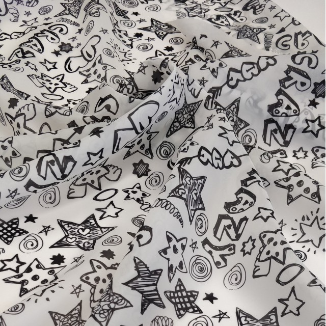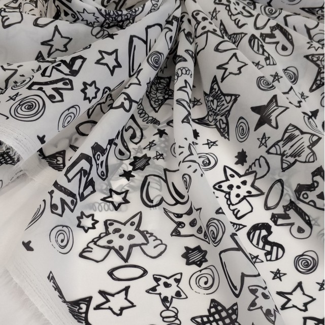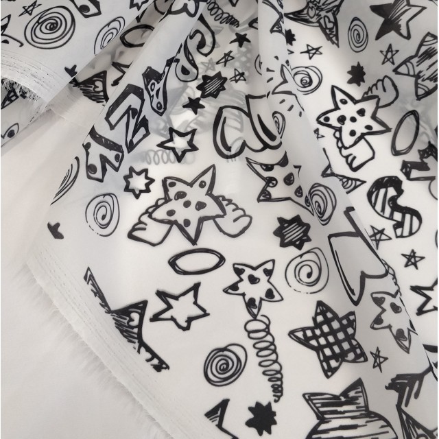 - Органза матовая Виола с принтом Каракулевые звездочки