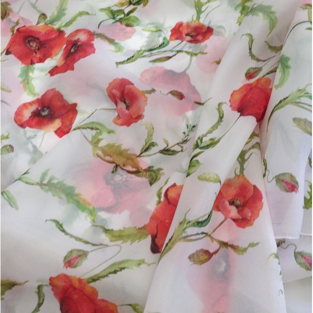 Ткань органза матовая Виола с красивым принтом будет прекрасным вариантом для пошива нарядных платьев.