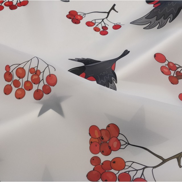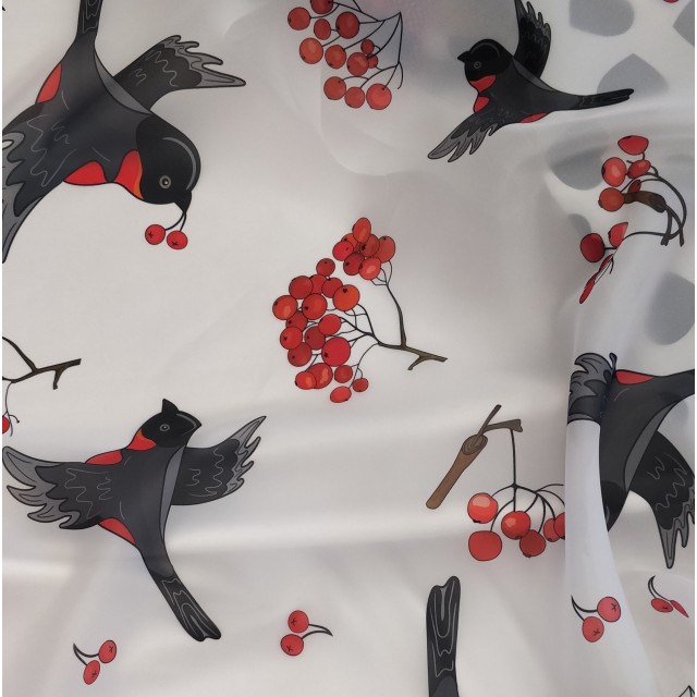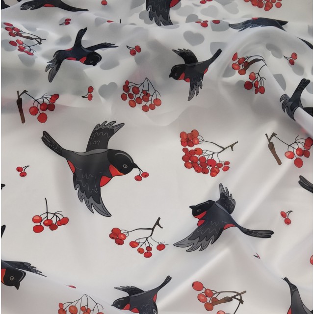 Органза матовая Виола с принтом Снегири