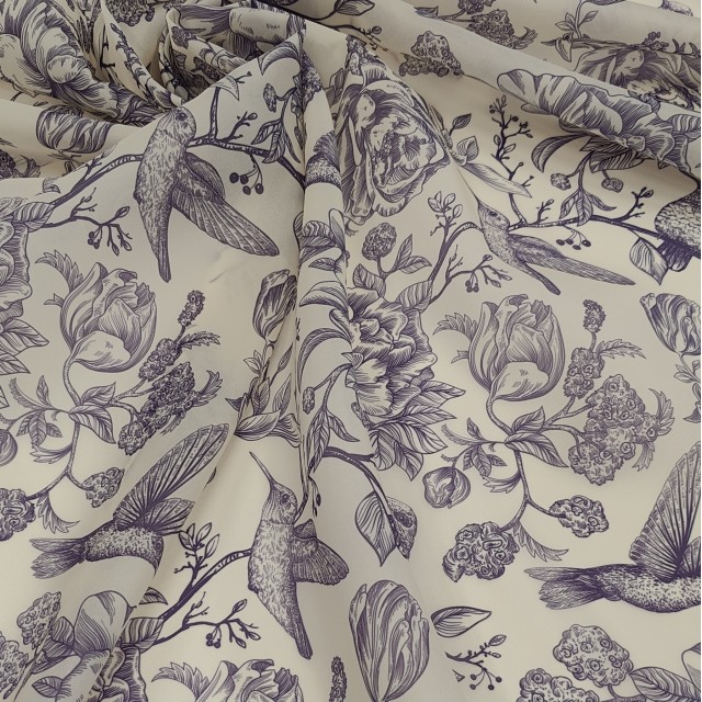 - Ткань органза матовая Виола с красивым принтом будет прекрасным вариантом для пошива нарядного платья.
