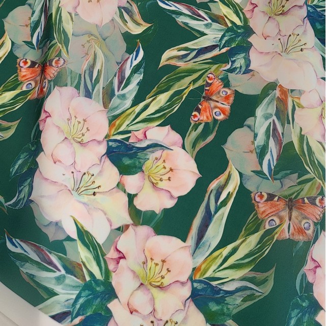 - Органза матовая Виола с красивым тропическим принтом