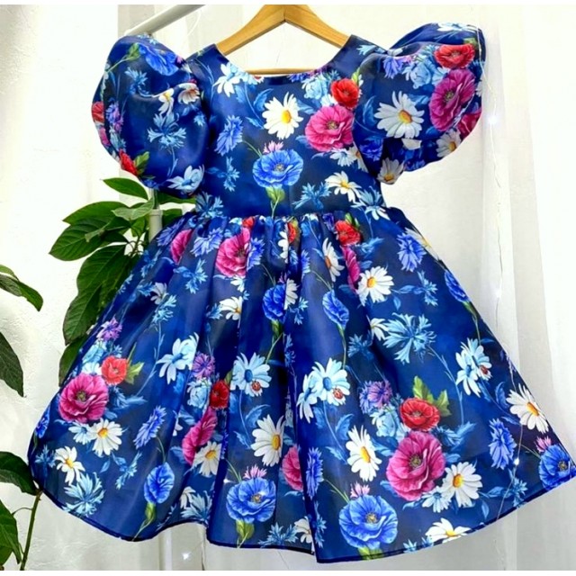 Ткань органза матовая Виола с красивым принтом будет прекрасным выбором для пошива нарядного платья.