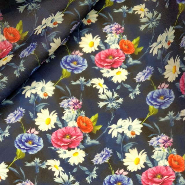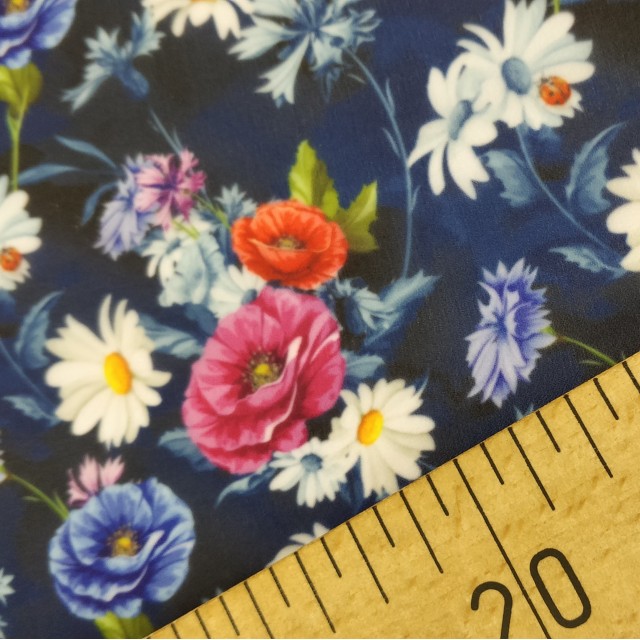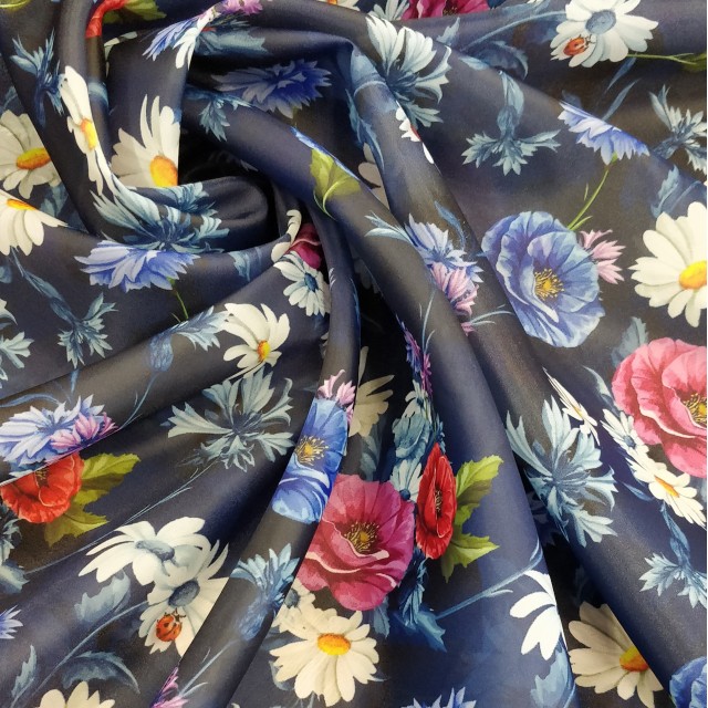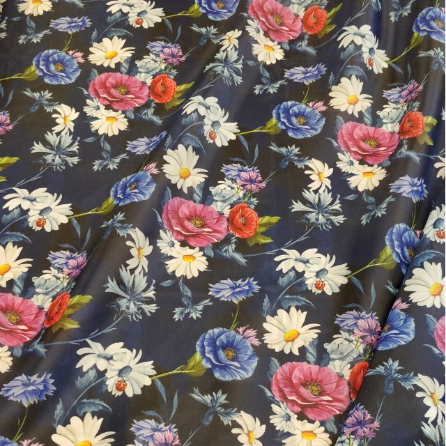 - Органза матовая Виола с узором из цветов мака и ромашкой