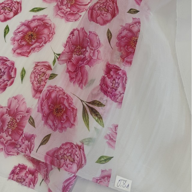 Органза матовая Виола цветочный принт Пионы 80 см