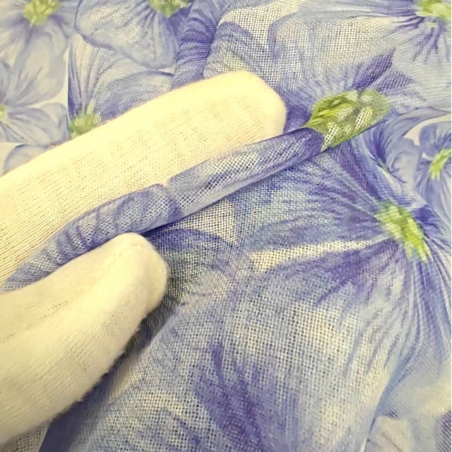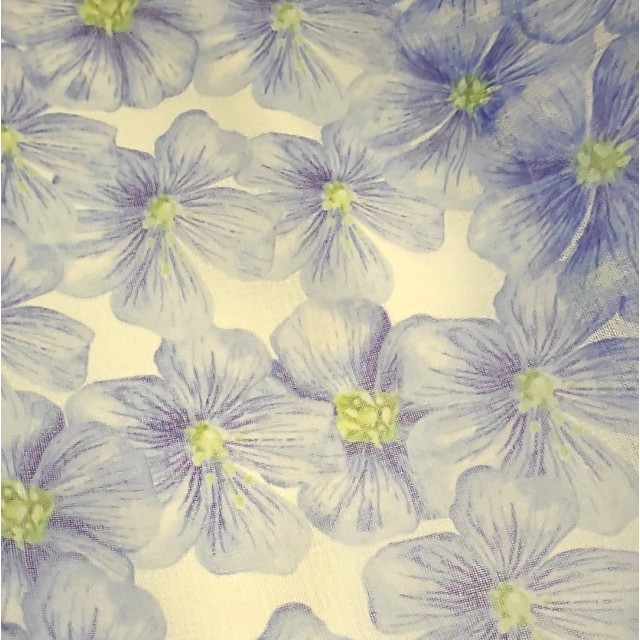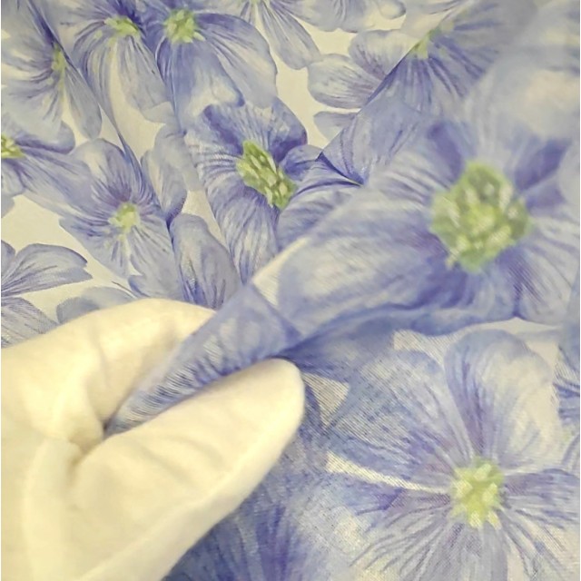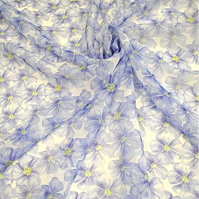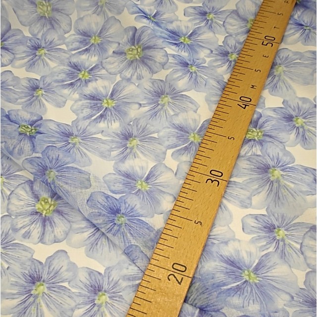 • Органза Тори матовая с голубыми цветами льна с нежными лепестками