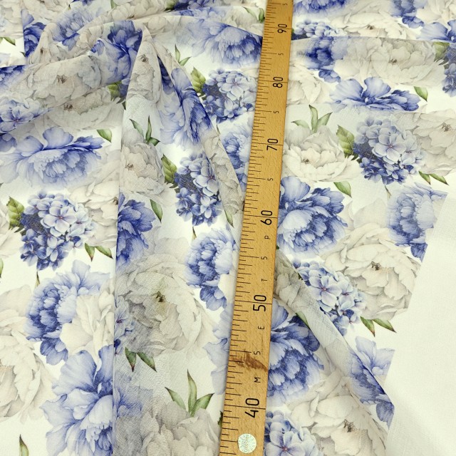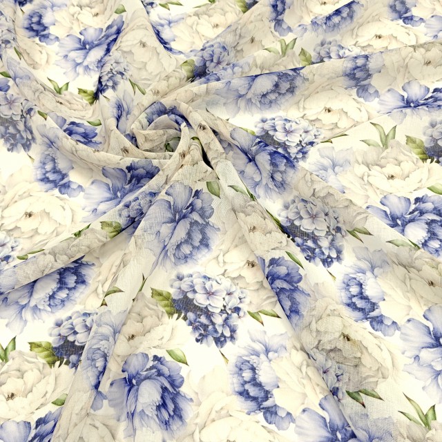 - Органза тори с бело-голубыми Пионами для пошива нарядных платьев