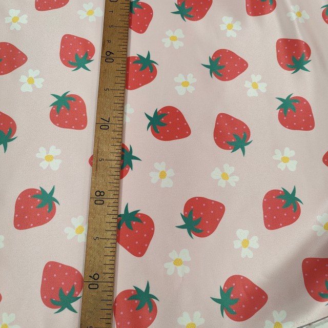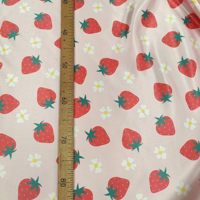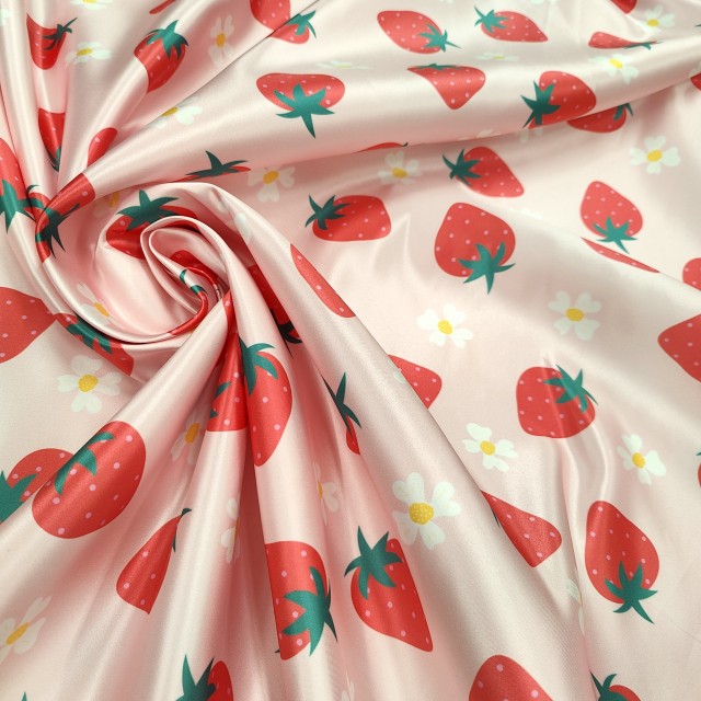 Атлас Дюпон с цветами и клубничками