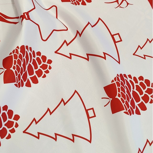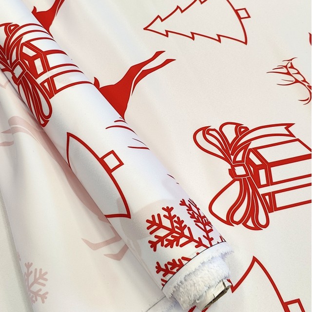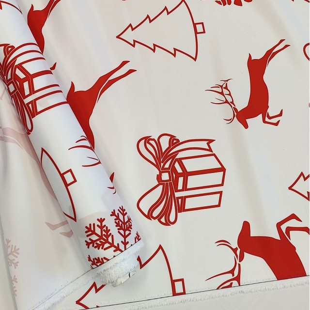 - Атлас матовый Абрахам новогодний принт с оленями для пошива нарядных платьев и нарядов