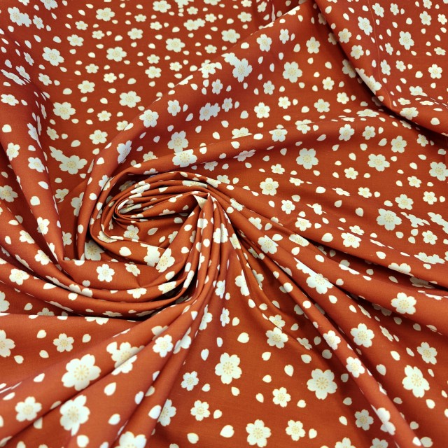 - Поплин плательный с белыми цветочками японской сливы для пошива нарядных платьев