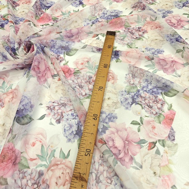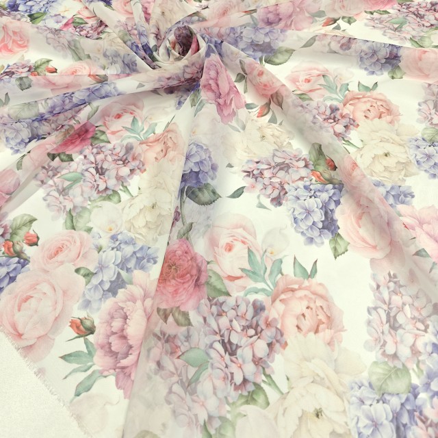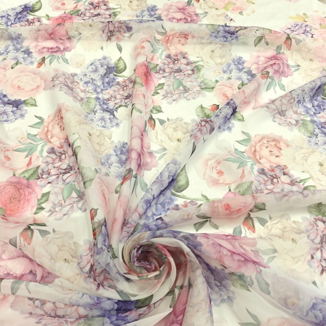 - Шифон Romy с красивым цветочным принтом для шитья нарядных платьев