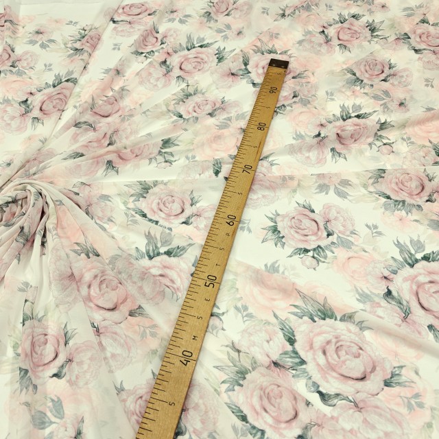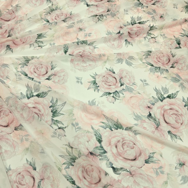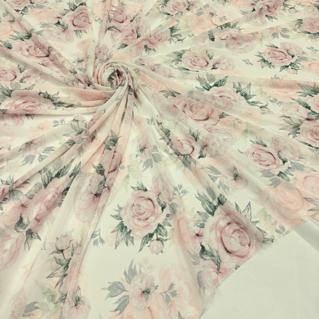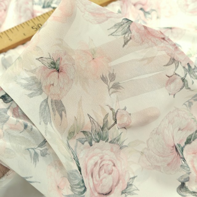 - Шифон Romy с принтом акварельные пионы для шитья нарядных платьев