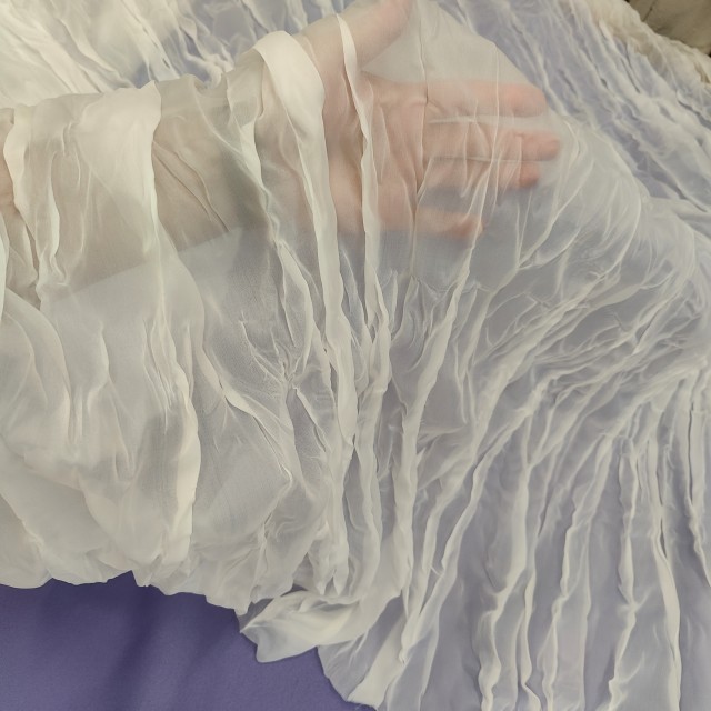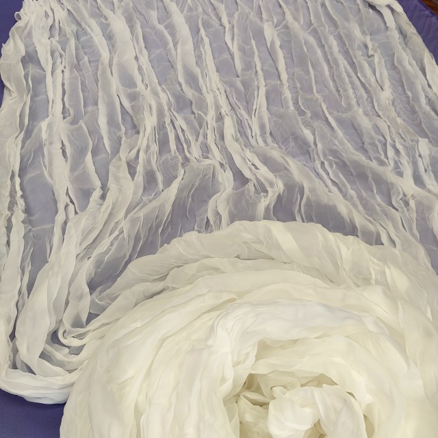 - Органза Виола жатая молочного цвета для создания красивых нарядов